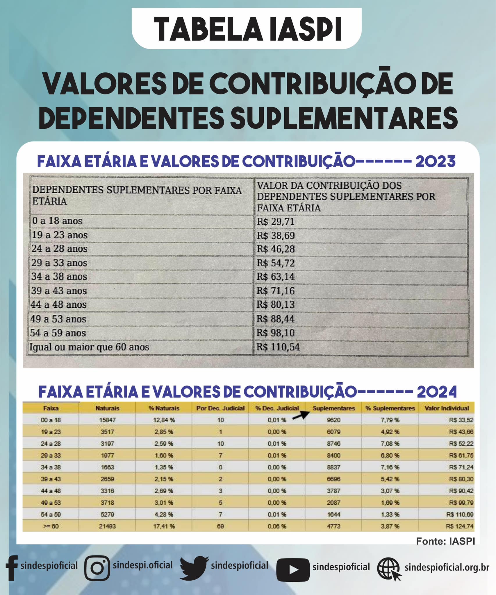Confira a Tabela do IASPI com os valores de contribuição de dependentes suplementares |