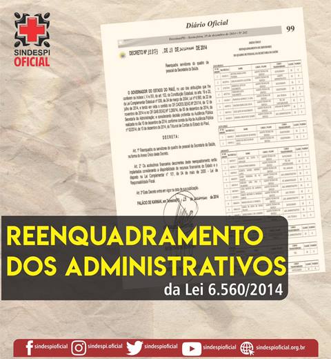 para as servidoras e servidores Administrativos da Lei 6560, de 2014. O